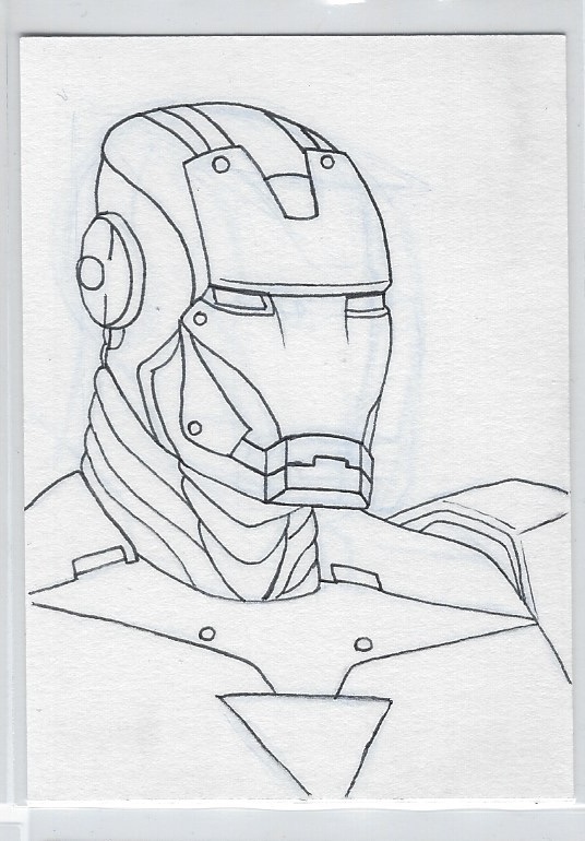 this is a highly detailed sketch of ironman on a sketch card, the size is 2 5/8 x 3 5/8 and it comes in a protective card sleeve. this is 1of1 the only one like it.
